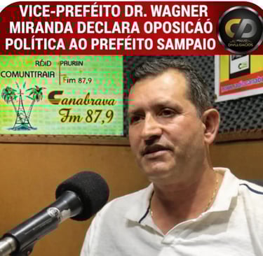 Em entrevista concedida à Rádio Comunitária Canabrava FM 87.9, no dia 06/04/2026,o vice-prefeito Dr. Wagner Miranda anunciou publicamente seu rompimento político com o atual gestor municipal, o prefeito Sampaio. A declaração marca um novo momento na política de Miguel Calmon e já repercute entre lideranças e a população.