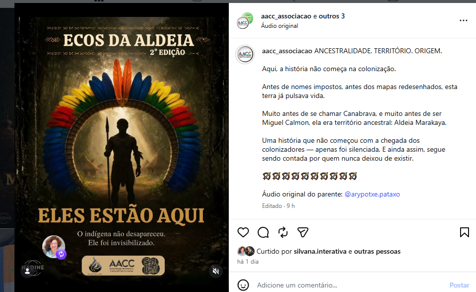 Hoje, 10/04/2026, o presidente da Associação Artística e Cultural Calmonense (AACC), Iwison Ricardo, participou de entrevista na Rádio Canabrava FM 87,9, onde destacou uma série de ações desenvolvidas em alusão ao mês dedicado aos povos indígenas.
