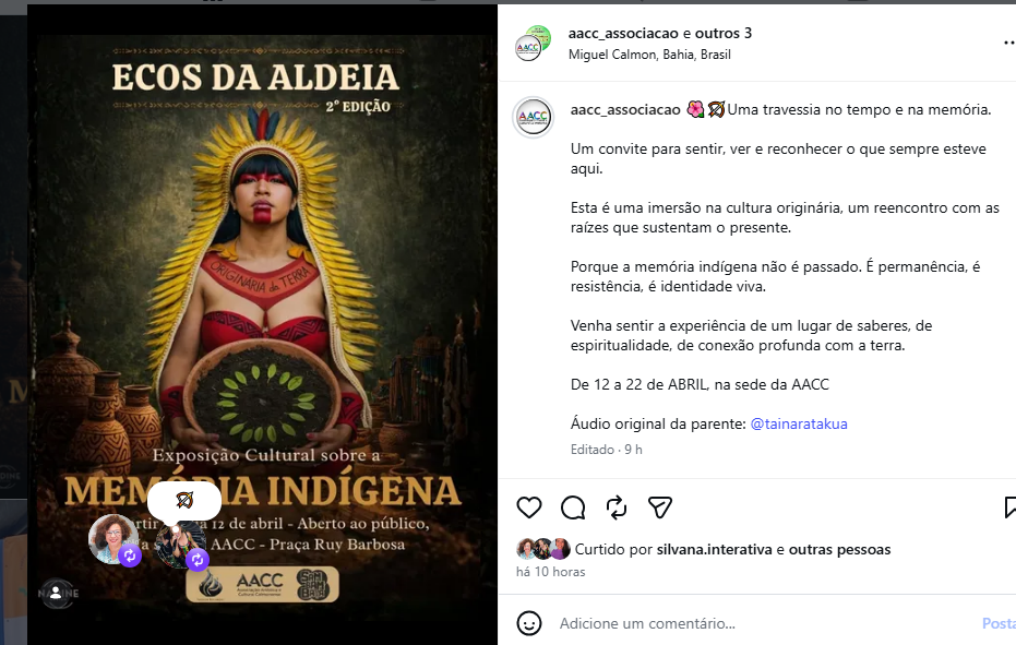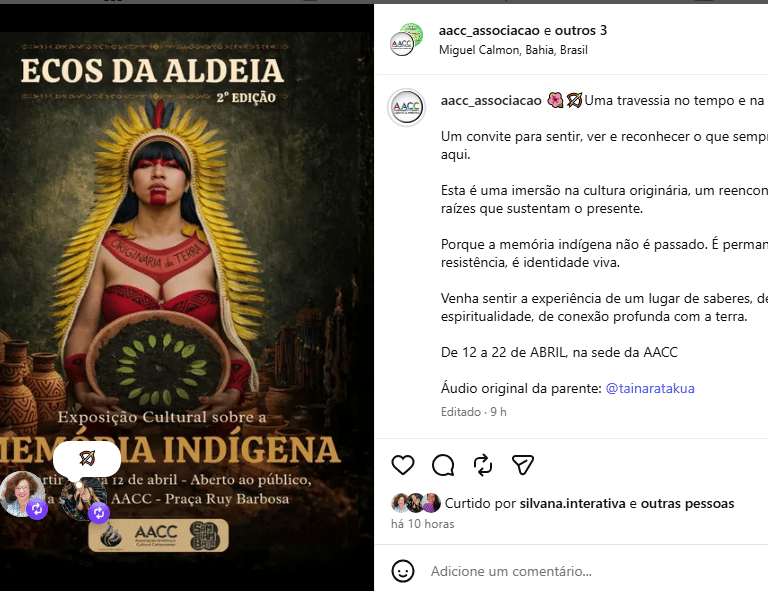 Abril, mês dos povos indígenas, AACC mobiliza ações culturais em Miguel Calmon.